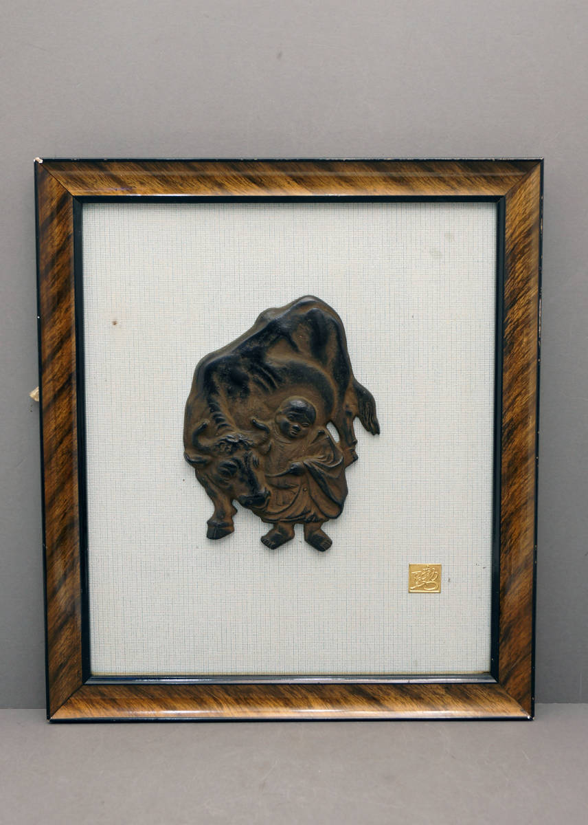 - 伝統美術工芸品パネル 鋳鉄レリーフ 牛飼童 工芸パネル 勅・万右衛門