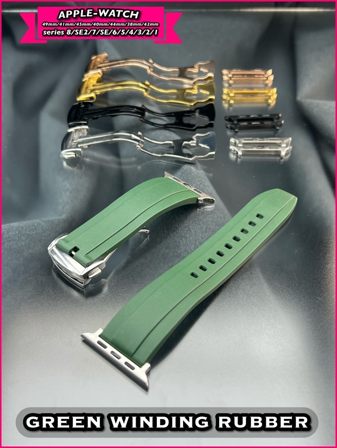 > グリーン アップルウォッチ ワインディングラバー 特殊Oバックル ベルト バンド 46mm 49mm 41mm45mm 40mm44mm 42mm シリーズ10 ウルトラ SE