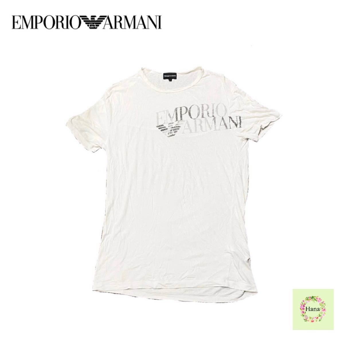 > 【美品】 EMPORIO ARMANI エンポリオアルマーニ Tシャツ ロゴ入り トップス 半袖 L1T19J L14GJ コットン ホワイト M 中古