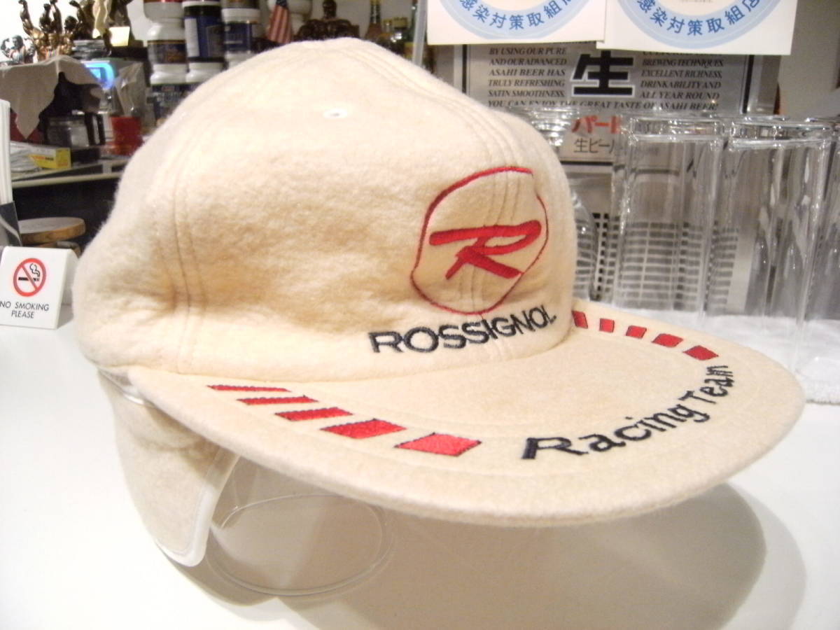 - 昭和レトロ★80年代★日本製★当時物 ROSSIGNOL Racing Team ロシニョール レーシングチーム 耳あて付き スキー帽子★防寒 釣り 登山 雪