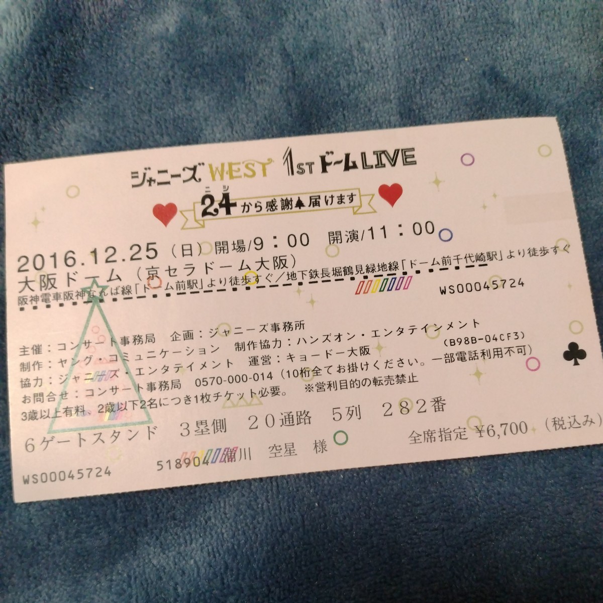 > ジャニーズWEST 1stドームLIVE 使用済みチケット★2016.12.25