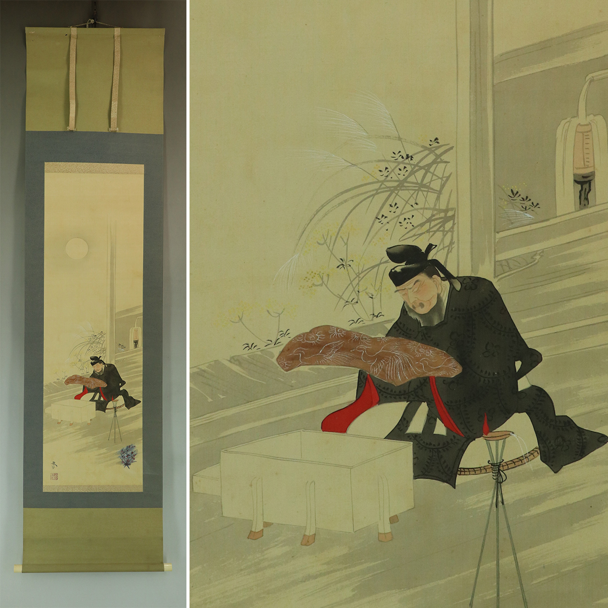 - 【肉筆】春草銘【菅公】◆絹本◆合箱◆掛軸 t01095