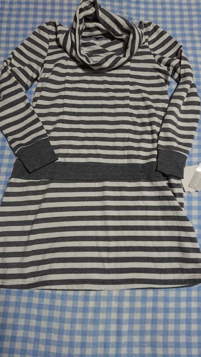 - 〇♪408☆未使用・保管品☆授乳服☆裏起毛トレーナーボーダーチュニックワンピ 灰М②