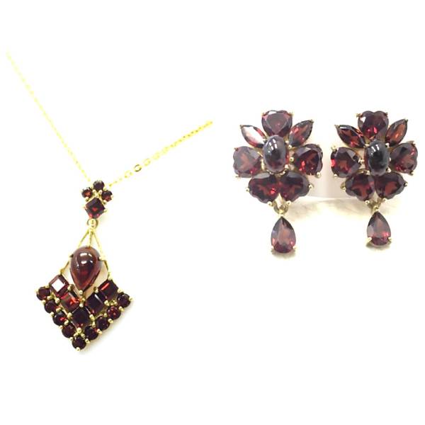 - 【セット】ペンダント ネックレスとイヤリング 銀製品 ガーネットのような美しい赤い輝き シルバー SILVER