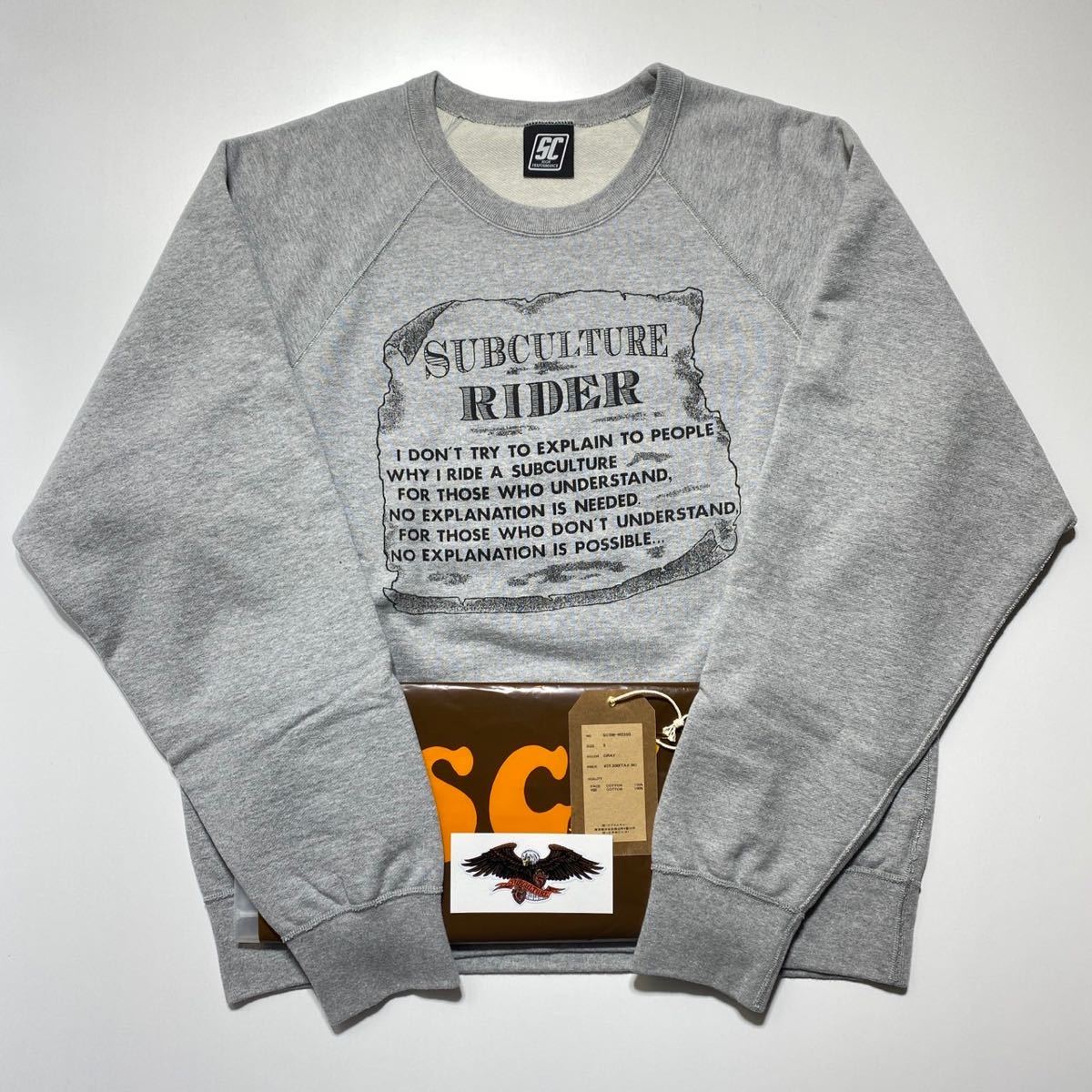 > 【3】SUBCULTURE RIDER CREW NECK SWEAT GRAY サブカルチャー ライダー クルーネック スウェット グレー ラグラン (SCSW-W2203) G1598