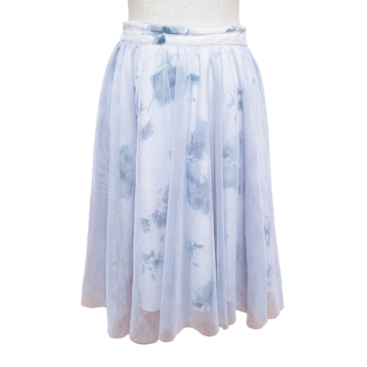 > Y178 allamanda アラマンダ チュールスカート フレア ひざ丈 バックゴム レディース 38 M相当 花柄 ブルーグレー エレガント かわいい