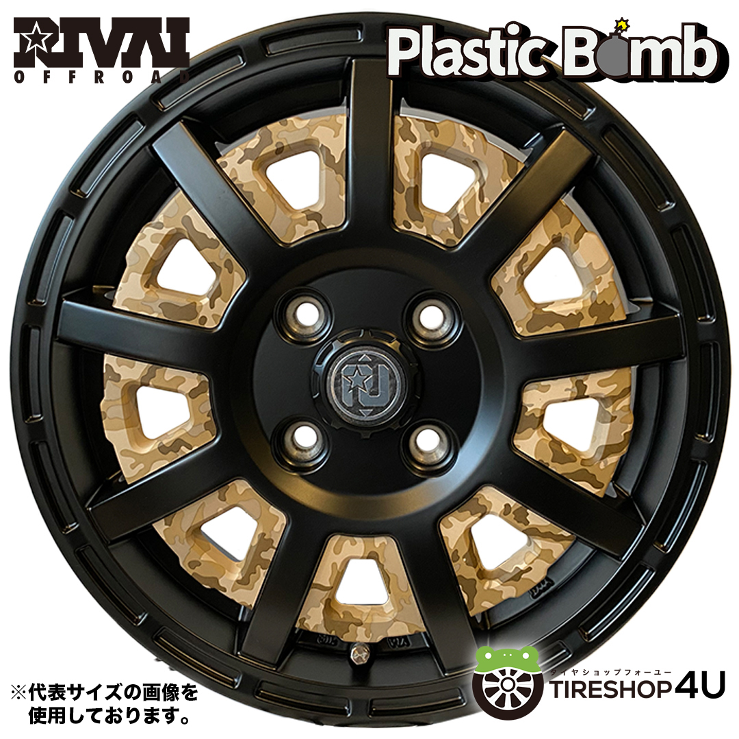 > 13インチ RIVAI OFFROAD Plastic Bomb 13x4.0 4/100 +43 マットブラック ベージュインサートセット プラスチックボム 軽トラ軽バン 1本価格