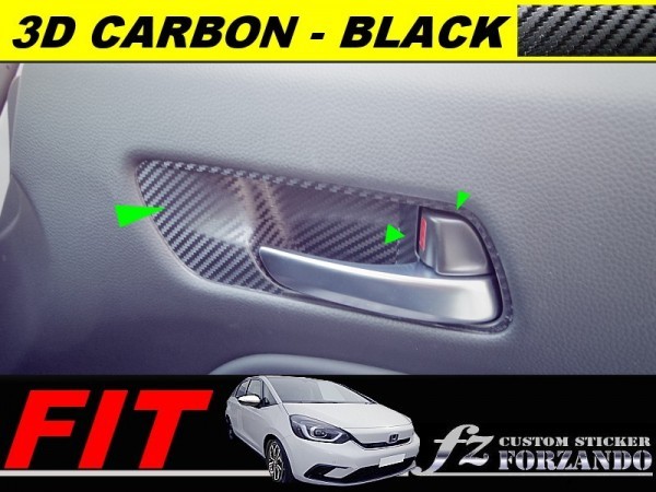 - 新型フィット インナードアハンドルカバー 3Dカーボン調 ブラック 車種別カット済みステッカー専門店fz GR3 GR1 GR6 GR5