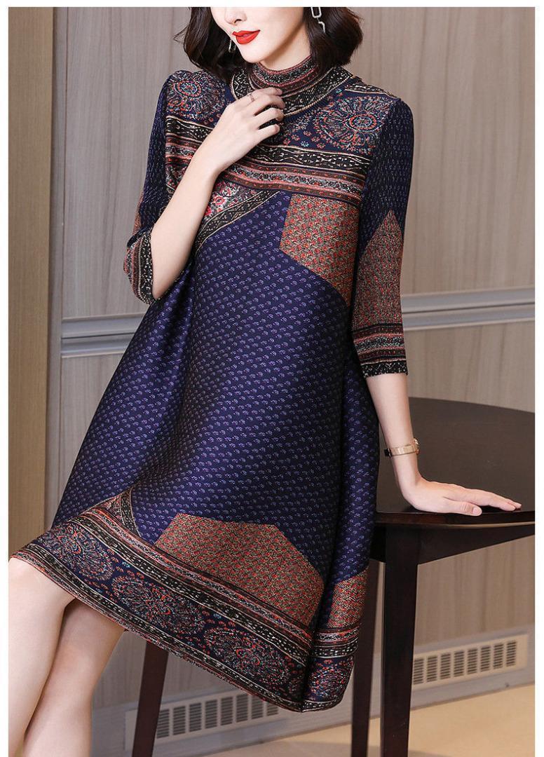 - 【パープル★Lサイズ】レディース ひざ丈 ワンピース エスニック柄