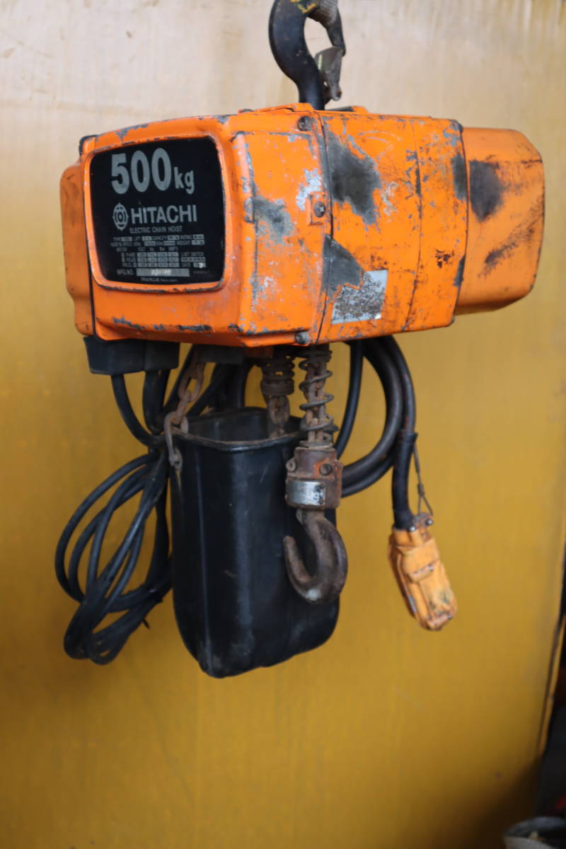 - 日立 電動チェーンブロック 500Kg 三相200V チェーンの長さ3m 動作確認済 即決価格