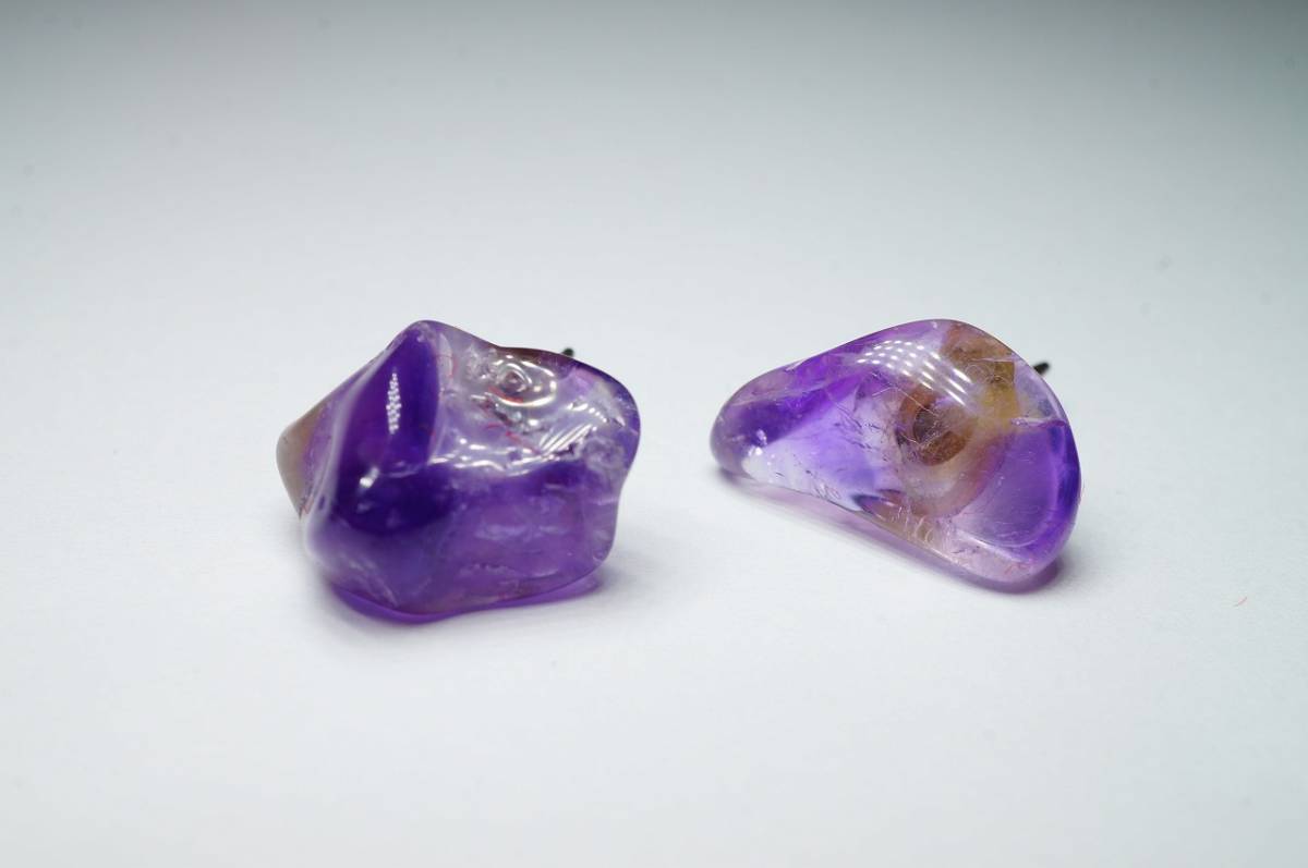 - 天然アメジスト原石スタッドピアス②「原石のまんまピアスにしました」これからの季節に!