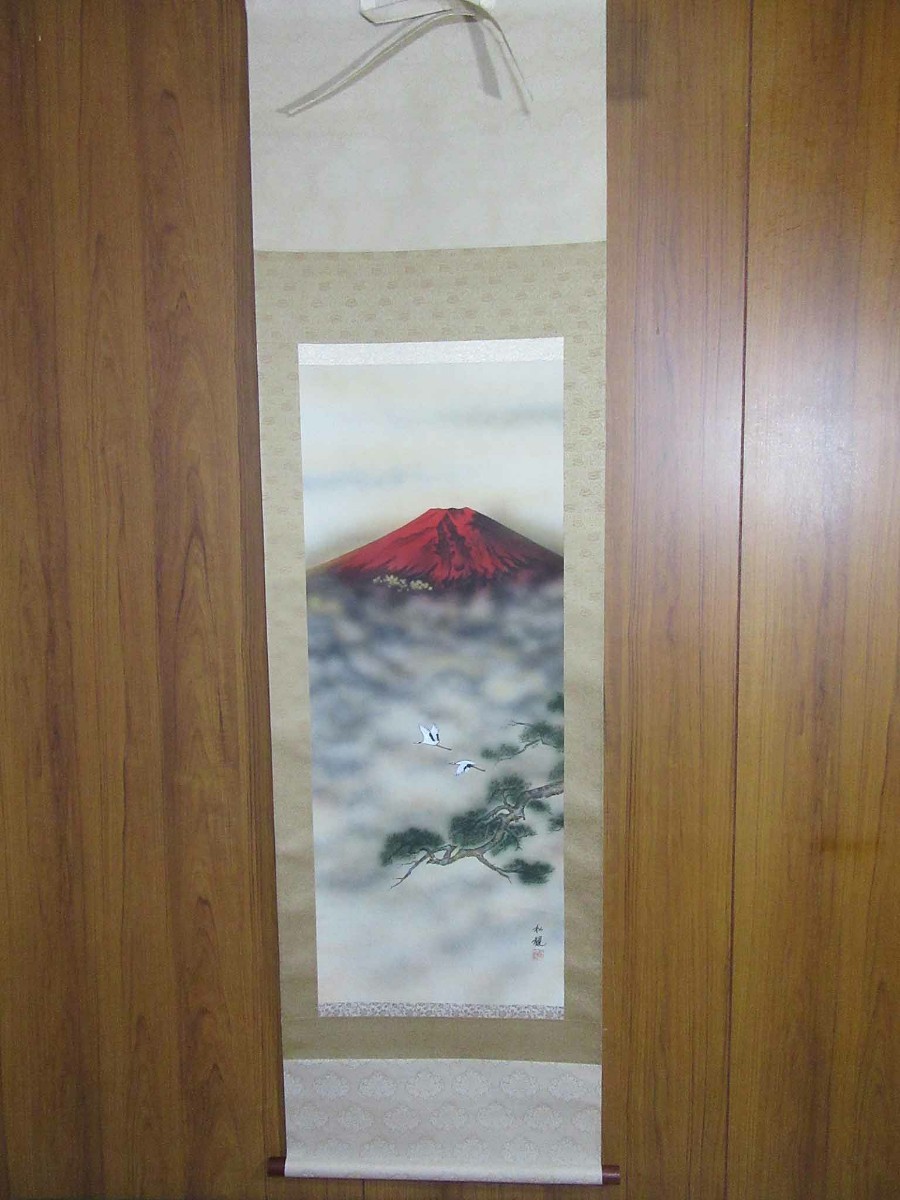 - 掛軸(模写):「赤富士」松観筆/J-230421★