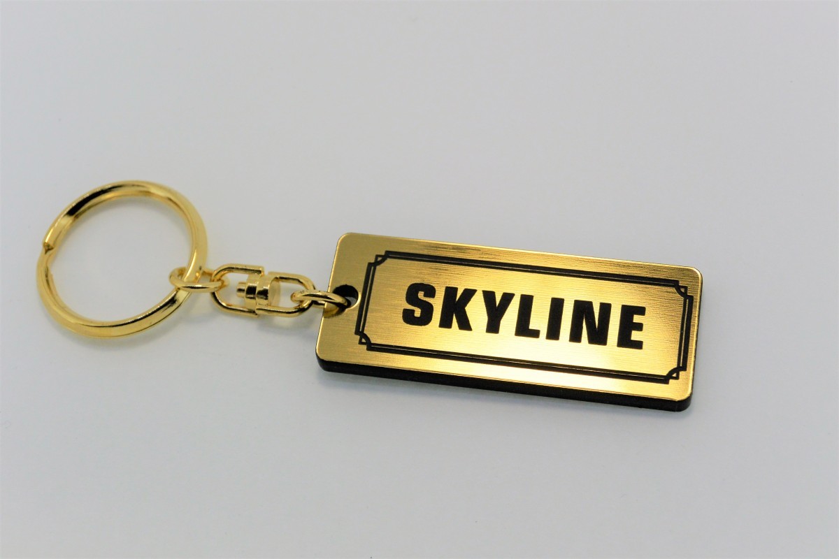 > A-429-1 SKYLINE 2層アクリル製 金黒 2重リング キーホルダー キーレス キーケース 日産 スカイライン ジャパン GTR dr30 V37 V36