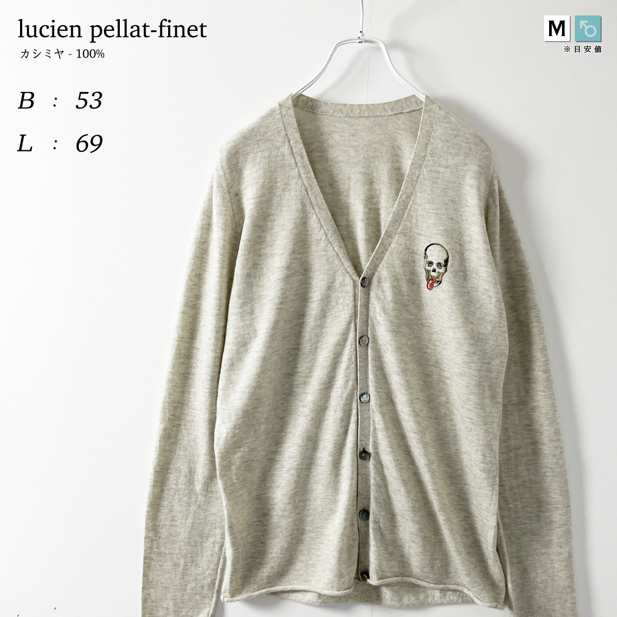 > lucien pellat-finet カシミヤ 100% 薄手 カーディガン 白 アイボリー グレー オフ ホワイト ウォッシャブル 春 秋 ルシアンペラフィネ M