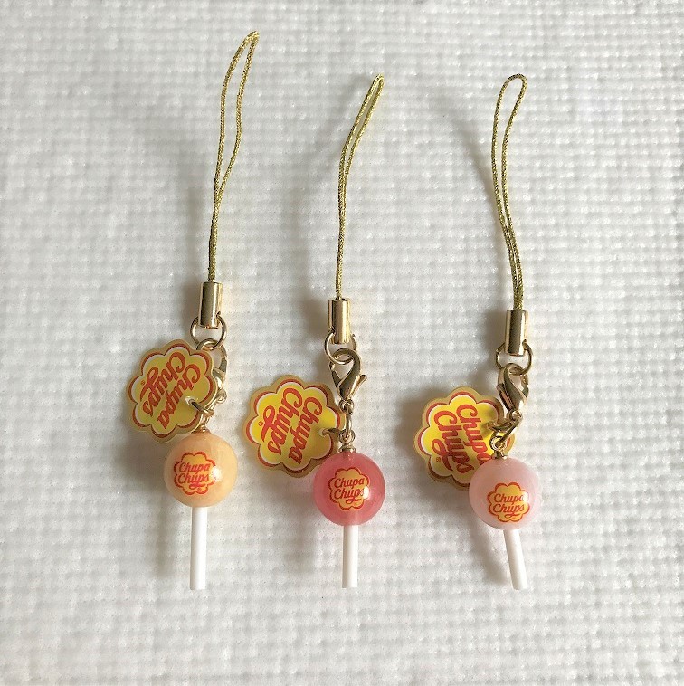 - ☆【チュッパチャップス】★未使用★パワーストーン ストラップ ★3色 セット クリーム チェリー ローズ 超レア☆