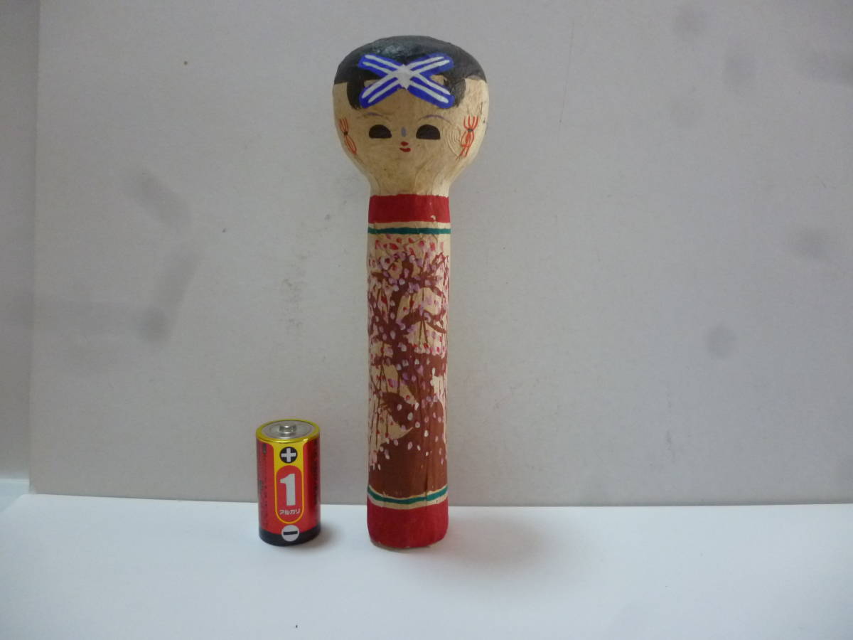 - レトロ 三春張子 こけし 三春滝桜模様 24.5cm
