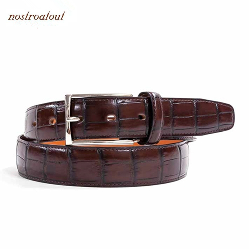 - ベルト日本製メンズ チョコ クロコダイル型押しベルト カット調整可 牛革 守屋 nostroatout ノストロアトゥー NA-7120122CHO