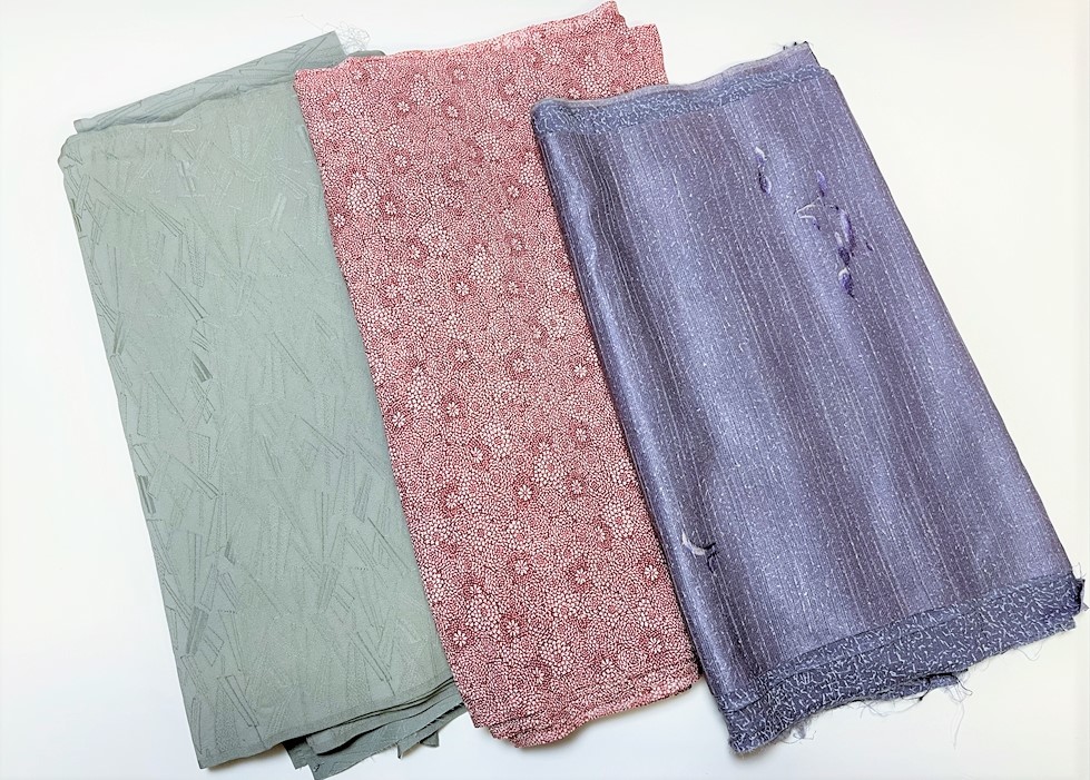 - 花とら●リサイクル端切れ 解き洗い 色無地 小紋 まとめて リメイク 素材 花柄 紫 灰緑 230414