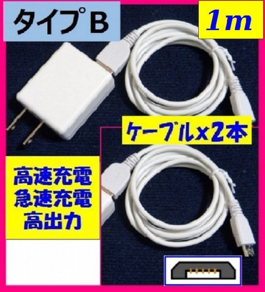> 【送料無料:3点:充電ケーブル x 2本(1m)+ACアダプター】★タイプB:USBケーブル★スマホ 白 :携帯★充電 充電 携帯