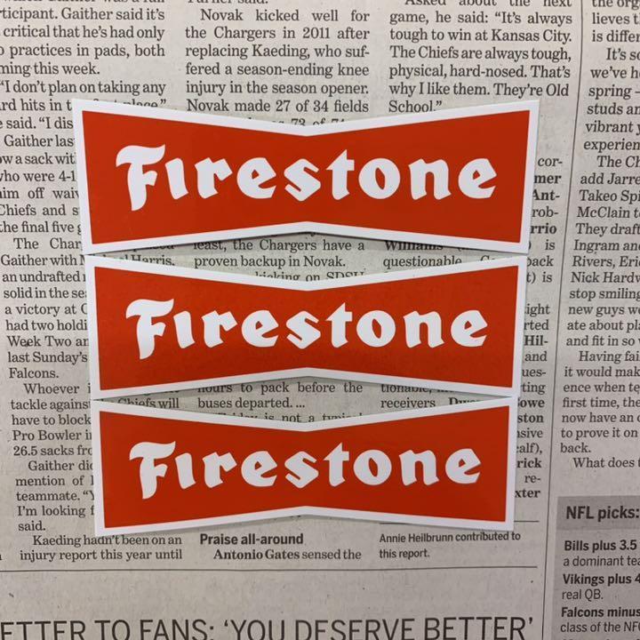 - Firestone ファイアストン/ステッカー 3枚セット シール ビニール アメリカン雑貨 USA ロゴマーク USA 車 バイク ブリヂストンタイヤ