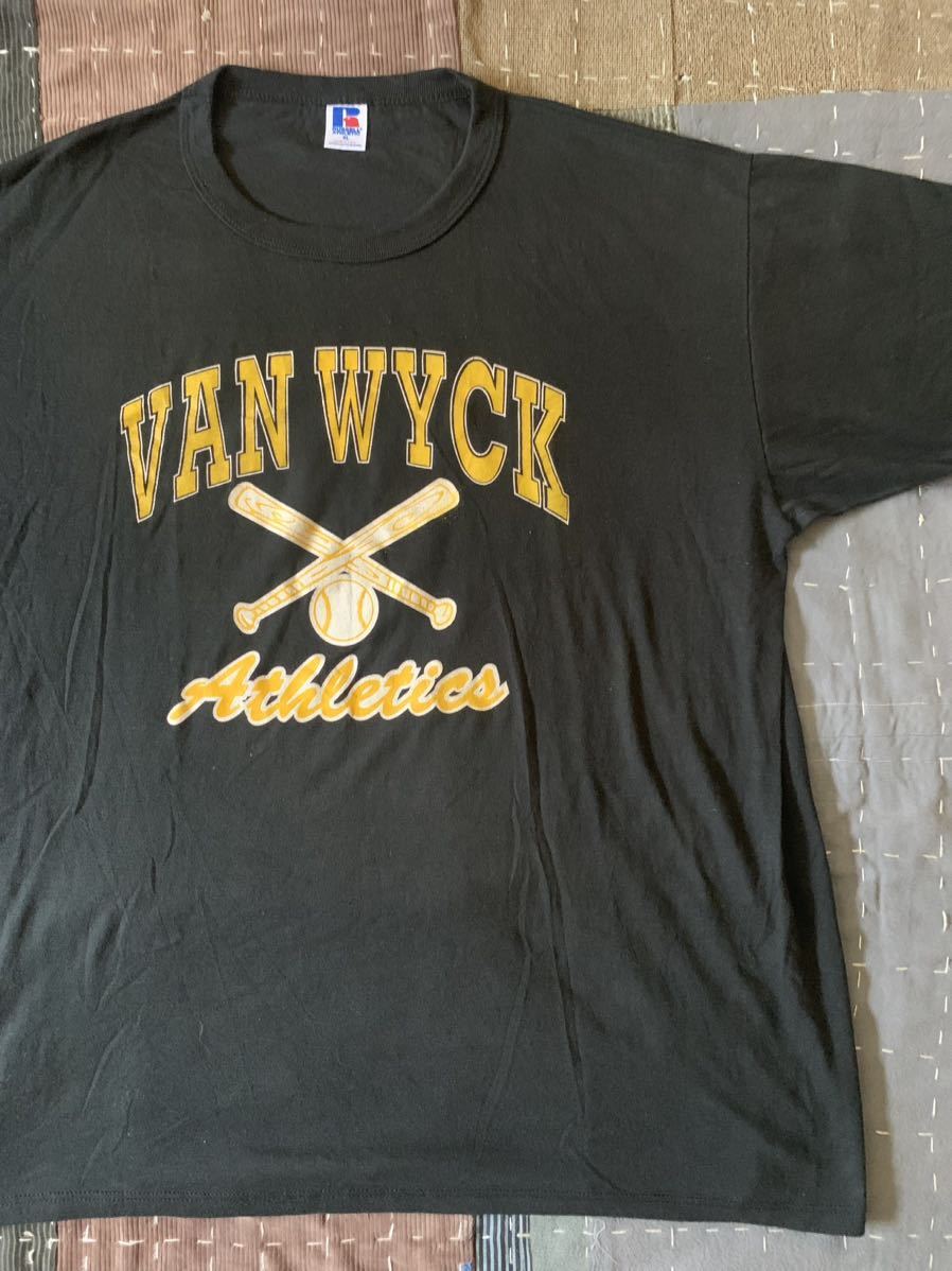- 80s XL ラッセル vintage Tシャツ 黒 ブラック Russell USA製 アメリカ製 ビンテージ baseball 野球 ベースボール
