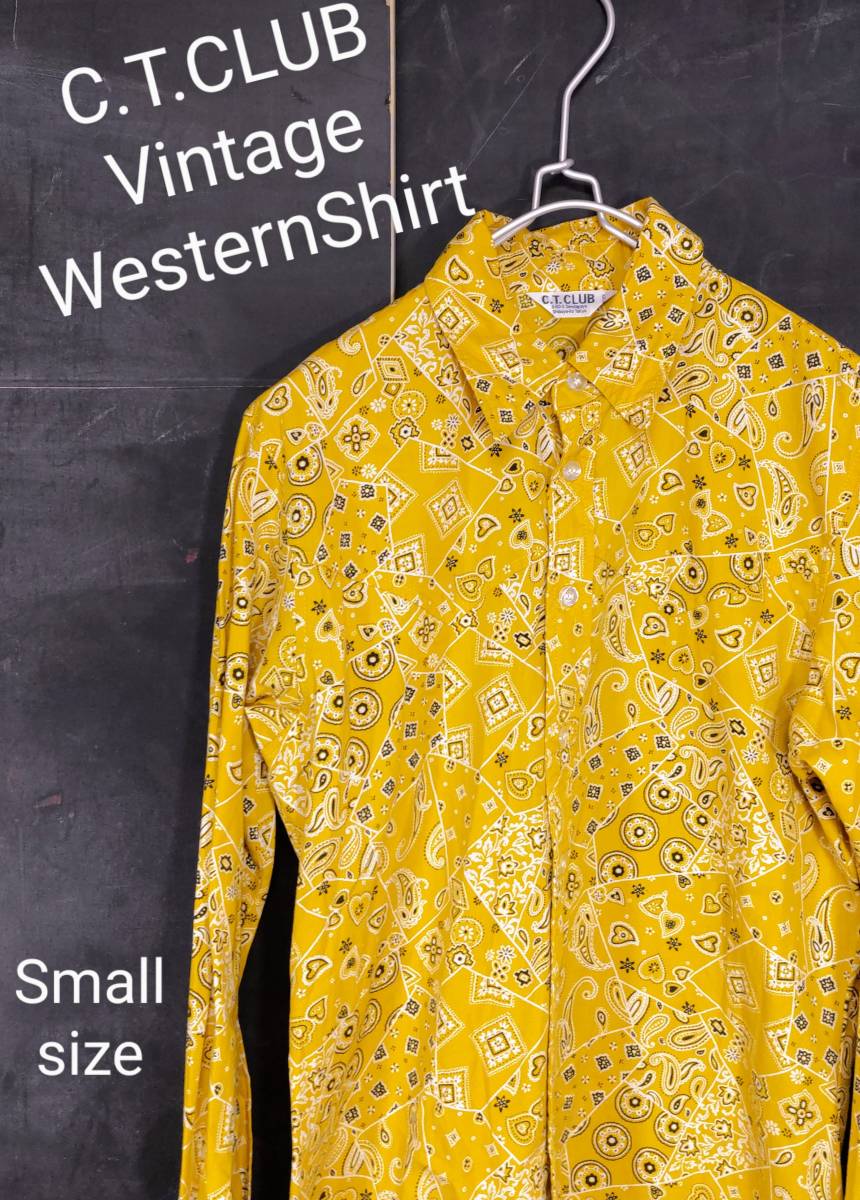 > ★送料無料★ C.T.CLUB 日本製 ヴィンテージ ウエスタンシャツ ペイズリーシャツ イエロー 長袖 Small size相当