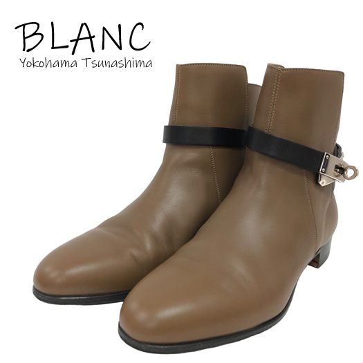 - エルメス ネオ ショートブーツ ケリー金具 レザー ブラウン ブラック #36 23cm 靴 横浜BLANC