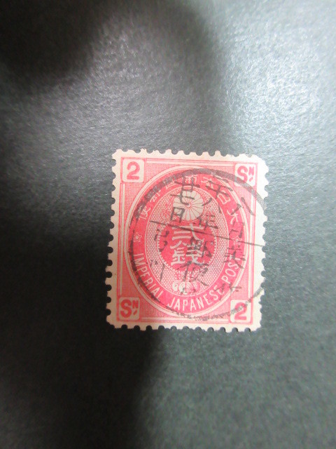 - 【小型丸一縦書印】新小判2銭 28.8.27/美作/郵便局/弓削