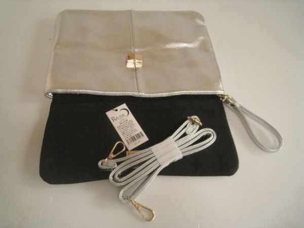 - タグ付き 合成皮革 シルバー スクエア クラッチバッグ ショルダーバッグ 肩ひも&ストラップ付き /19N5.17-33