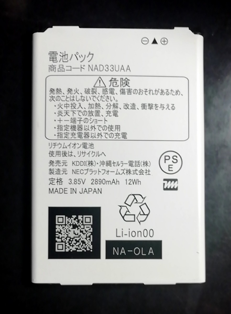 - 【中古・残り1個】UQモバイル純正NAD33UAA電池パックバッテリー【動作確認済】対応機種(参考)Speed Wi-Fi NEXT WX03