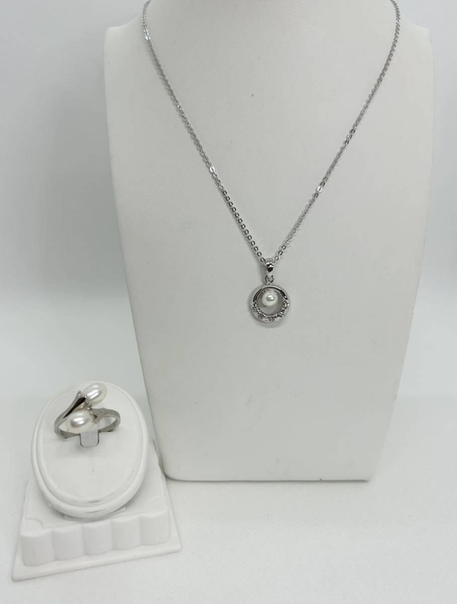 - 【新品未使用】淡水パールリング・ネックレスセット(サークル)/フリーサイズ