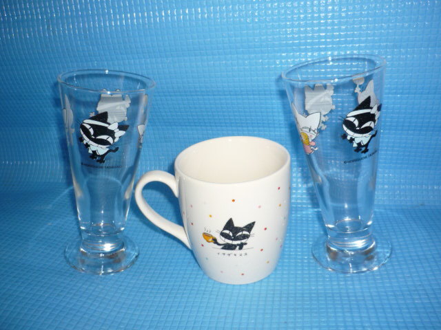 - E★未使用・非売品★ヤマト運輸 クロネコ・シロネコ マグカップとグラス2個の3点セット