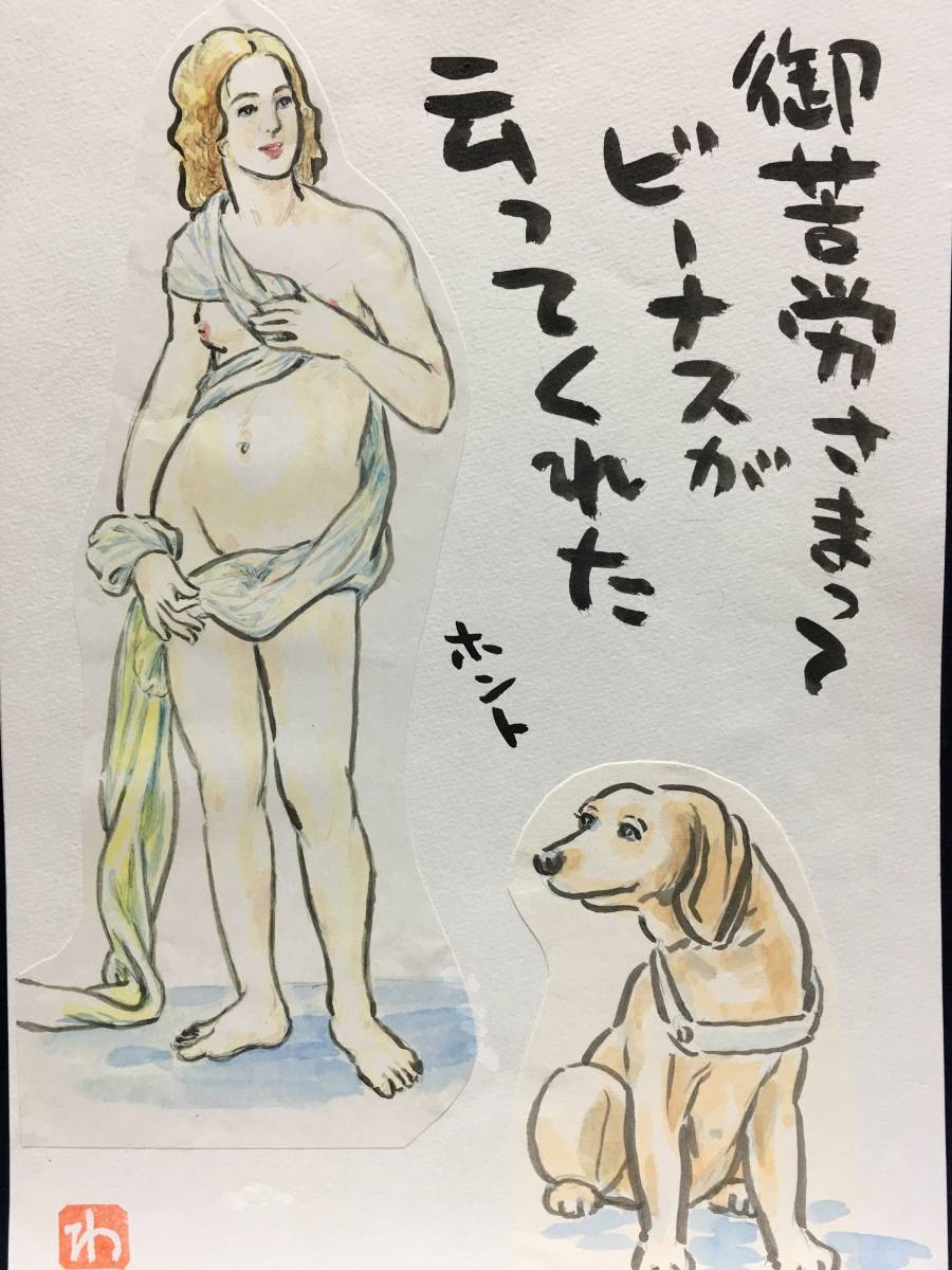 > 高橋わたる 高橋亘 たかはしわたる 漫画家 真作 肉筆画 水彩画 落款 原画 漫画 スケッチ画 イラスト画 デッサン画 犬 動物画 詩 歌 唄 珍品