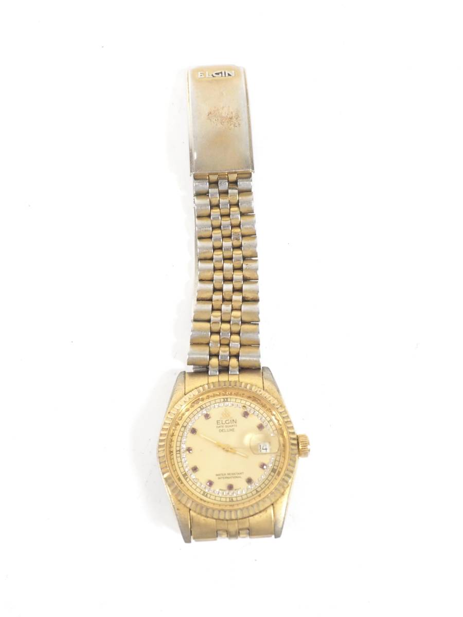 - ビンテージ ELGIN エルジン デラックスDATE FK1422G ゴールド文字盤 円盤直径3cm ベルト幅2cm 重さ105g YRT506