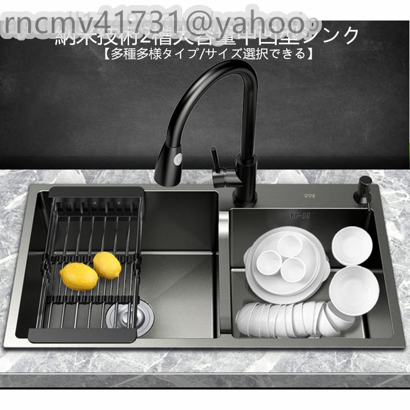 - 「81SHOP」品質保証☆納米技術 キッチンツール 304ステンレス製流し台 台所 2槽シンク キッチン 中凹型シンク 野菜シンク 大容量