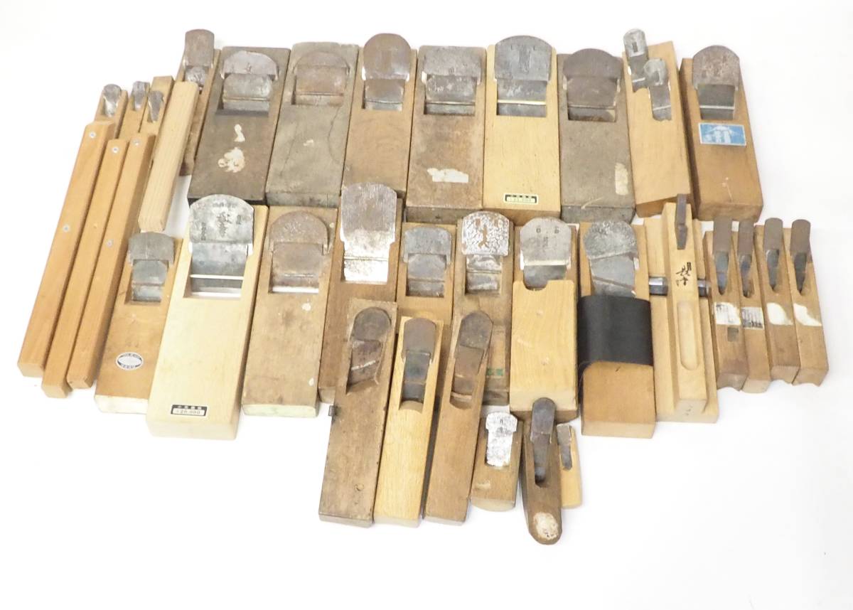 - ビンテージ 鉋31個セット お面制作用 面取りかんな 平鉋 木型内丸反鉋 豆鉋 反鉋 内丸鉋他多数 金四郎 源治 金剛丸 羽黒 角利 他 SMN506