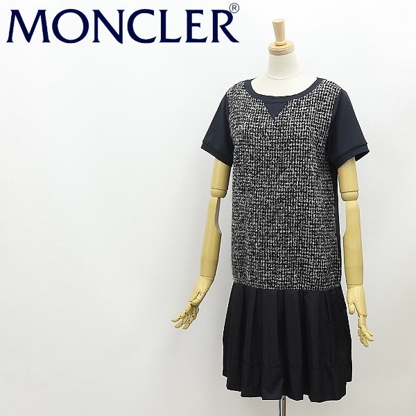 - ◆MONCLER モンクレール ABITO モヘヤ&アルパカ混 ツイード ニット 異素材 切替 ドッキング ワンピース S