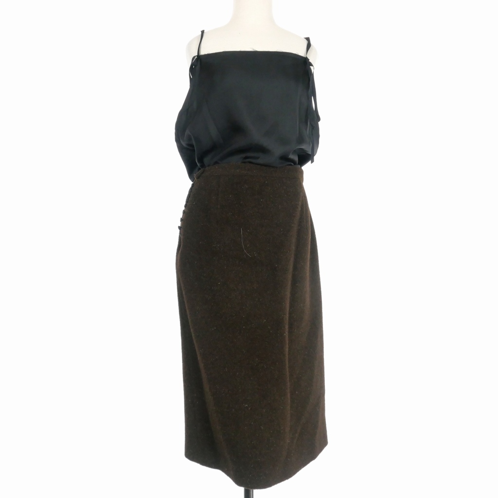 > メゾンマルジェラ Maison Margiela ウール スカート ドッキング ロング キャミワンピース 40 ブラック 黒 ブラウン 茶