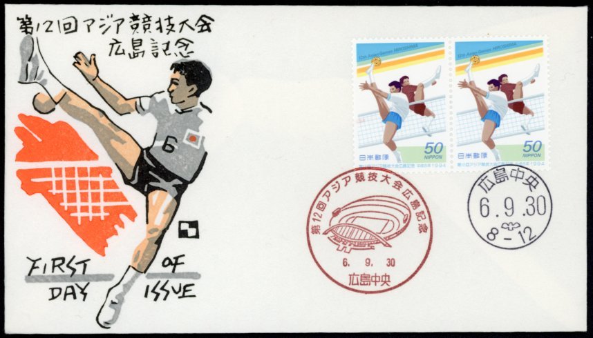 - 0197 【FDC】第12回アジア競技大会広島記念「セパタクロー」[広島中央/6.9.30/渡辺版](解説書なし)