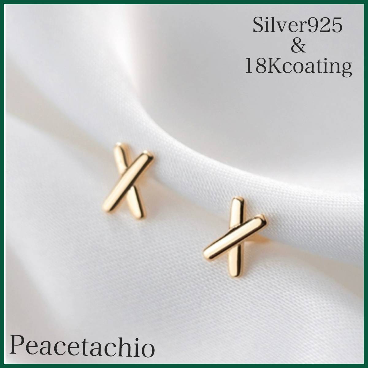 > ピアス シルバー Silver925 18Kコーティング クロス エックス アレルギー対応 プレゼント プチギフト 贈り物 専用収納ケース付