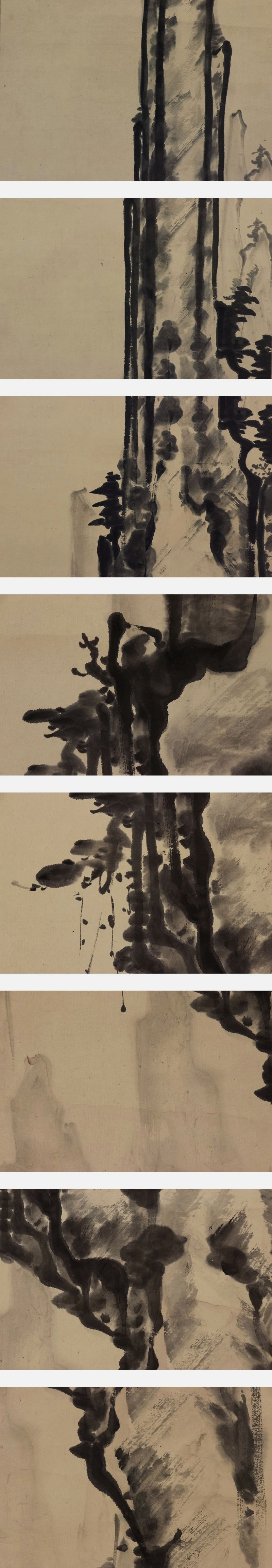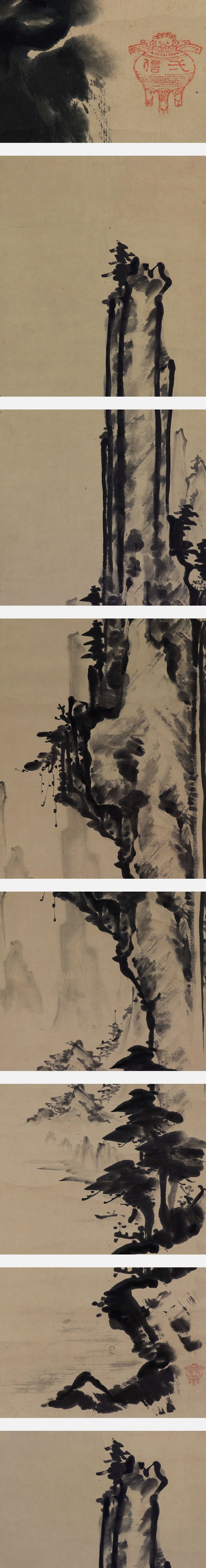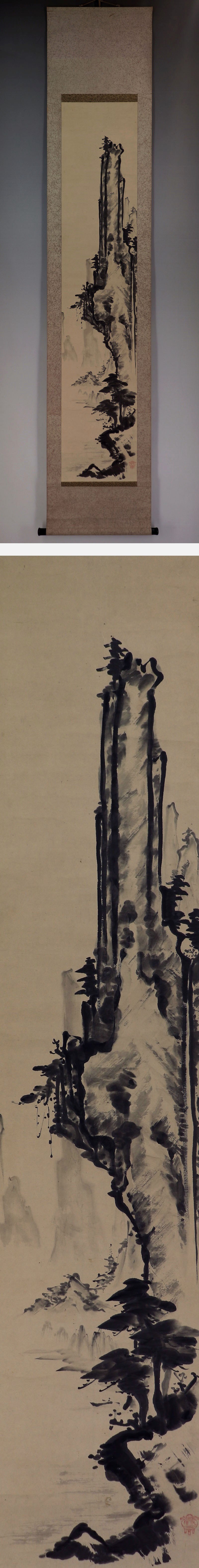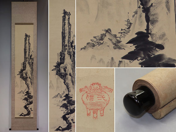 - 【肉筆】狩野派【水墨山水】◆紙本◆合箱◆掛軸 v09148