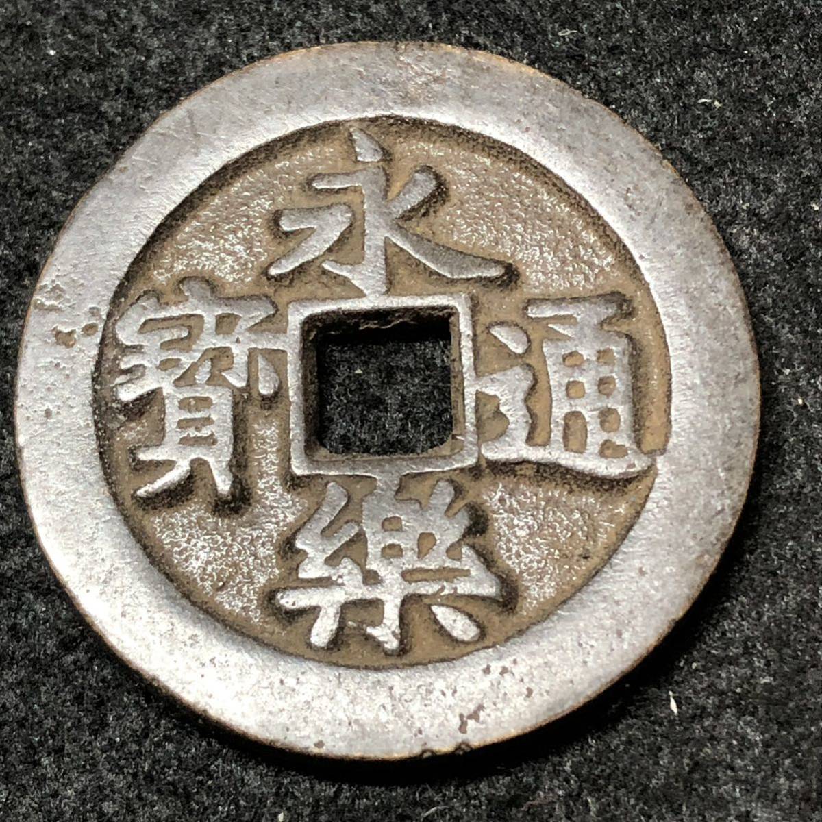 - 中国 清朝末年 骨董品 古物 コレクション 永樂通寶 福拾純銅 方孔銅銭 彫花銅銭 あ734