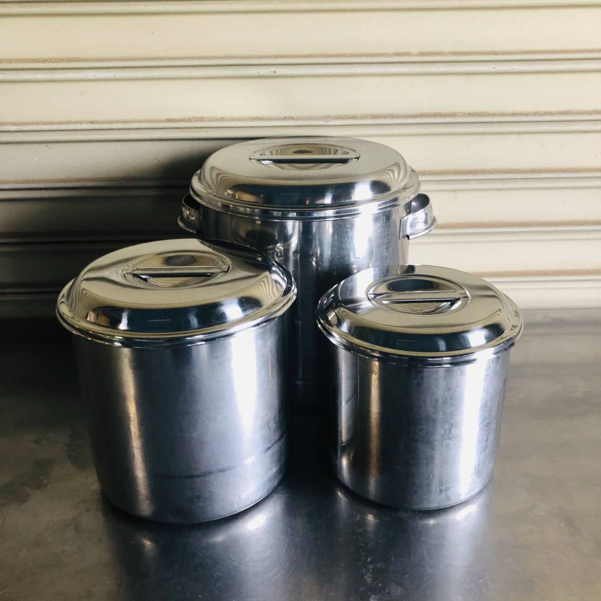 - AF115★ステンレス製★ 丸ポット 薬味入れ 3個 蓋付 厨房小物 調理小物 店舗用 業務用 厨房用 64