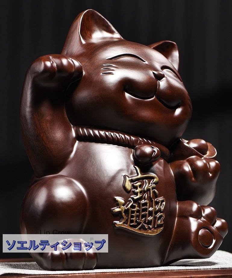 - 特価★可愛い招き猫 花梨木彫 玄関、客間の置物 招財