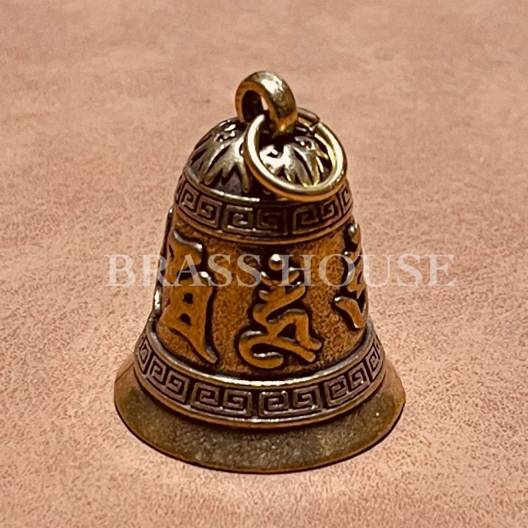 - J2 呼び鈴 キーホルダー(梵字)ガーディアンベル カウベル チャーム アクセサリー ネックレス ブラス 熊よけ ペット 犬 猫 キーリング