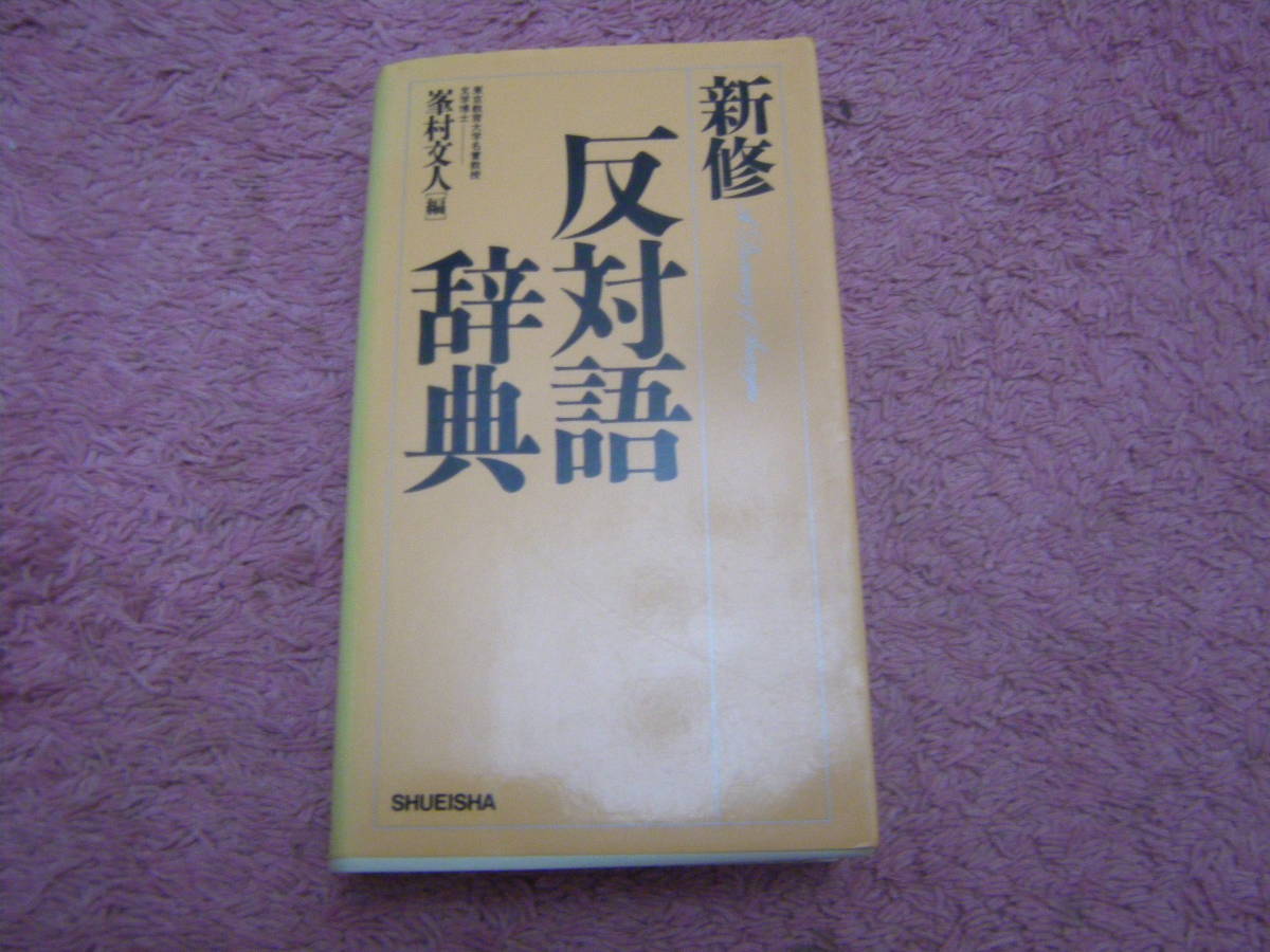 - 新修反対語辞典 集英社 基本的な現代語を中心に、漢語・古語・外来語・経済用語・科学用語にいたるまで8600語を選んで五十音順に配列。