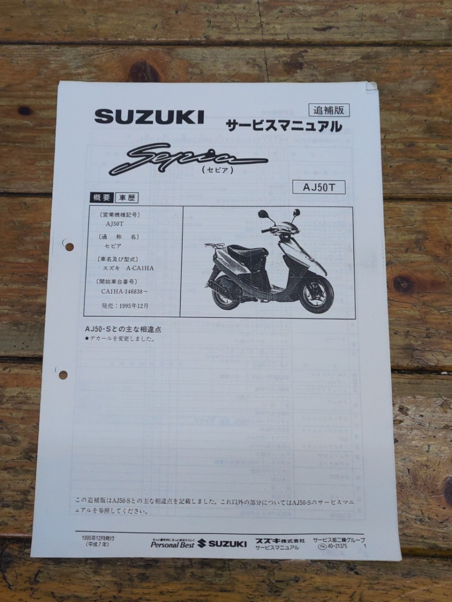 - セピア CA1HA(AJ50T) 追補版サービスマニュアル