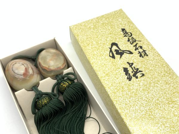 - 【風鎮】 高級石材 オニックス(縞めのう石)『オニキス 正絹房 風鎮』 掛軸/茶道/華道/仏具 N0705K