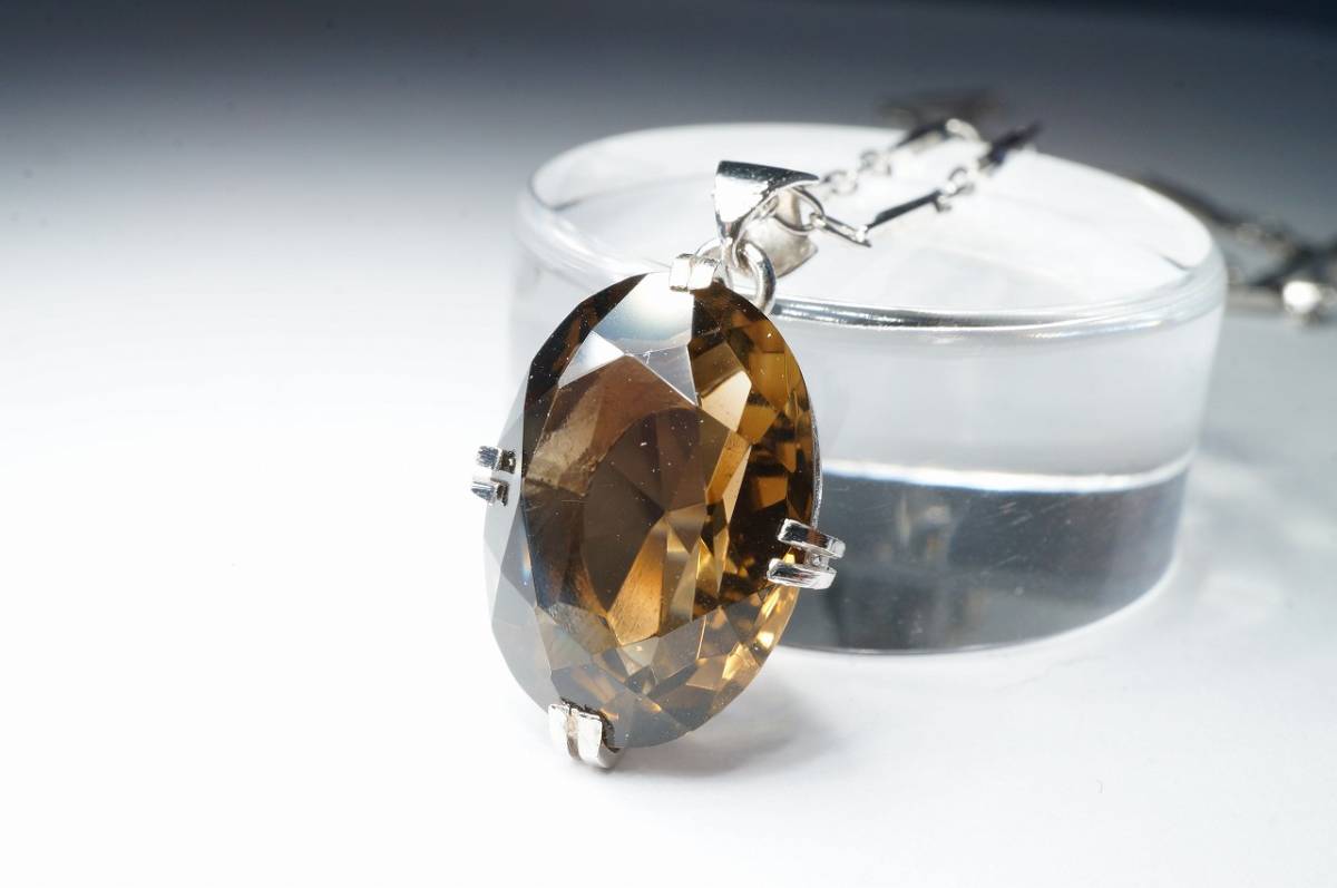 - 【特別即決価格!早い者勝ち!】極上天然茶水晶(スモーキークォーツ)オリジナルカット高透明度ペンダント真鍮金具
