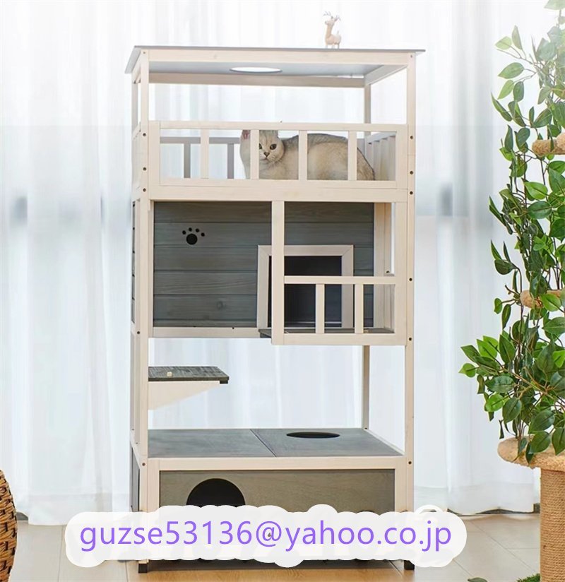 - 注目新作★猫の別荘 猫ベッド キャットハウス 実木 多機能 簡約 132*70*68cm 四季にも通用する 家庭 キャットタワー